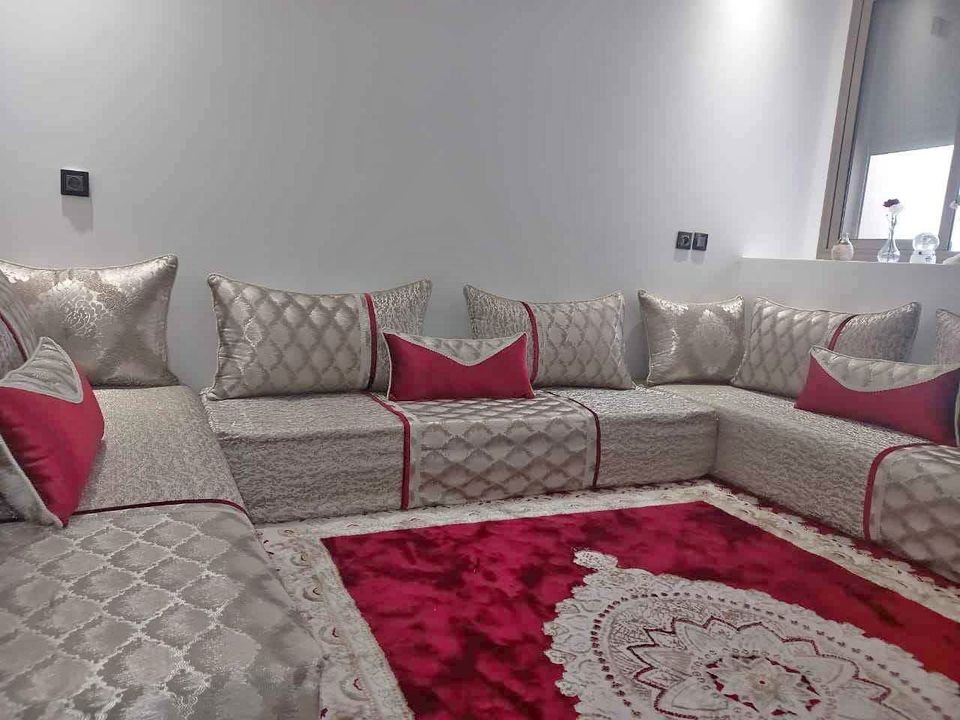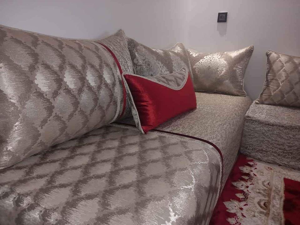 صالون بروكار مستعمل 4 شهور فقط 3 تلامط جوج متر على سبعين 10 مخاد كبار ديال تسعين وتلاتة مخاد صغار ديكور وجوج مخاد ديال سبعين لحوفة فرشي الكاليتي المزيانة الزربية ماشي البيع سبب البيع تغيير المنزل...