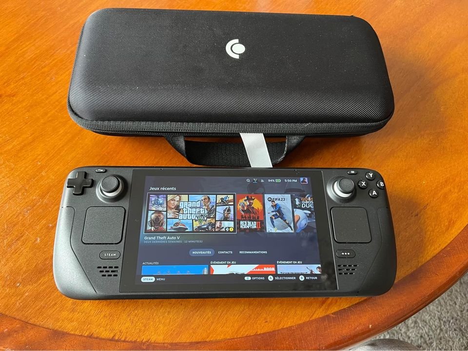 Steam deck en parfait état rarement utiliser avec ca sacoche et son chargeur.